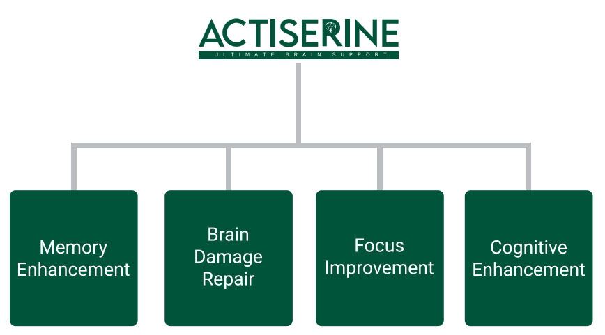ACTISERINE is a q unique and well researched proprietary Complex made from PS together with Arbinose and catechins from green tea, which makes it a complete nootropic supplement for Brain health and cognitive functions